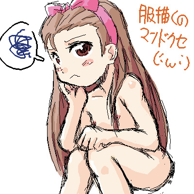 伊織nの服を描くのが面倒なのです……律っちゃんも面倒ですが、伊織はスカートもブーツもアレで……ベスパのイエロージャケットにブーツをぶつけたくなる位に面倒です。