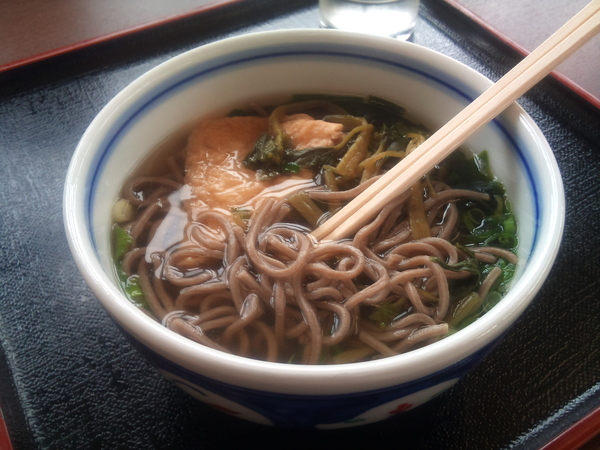 仕方ないので先に進んで鹿野PAで葉わさびそばを食べる……なかなかおいしい。